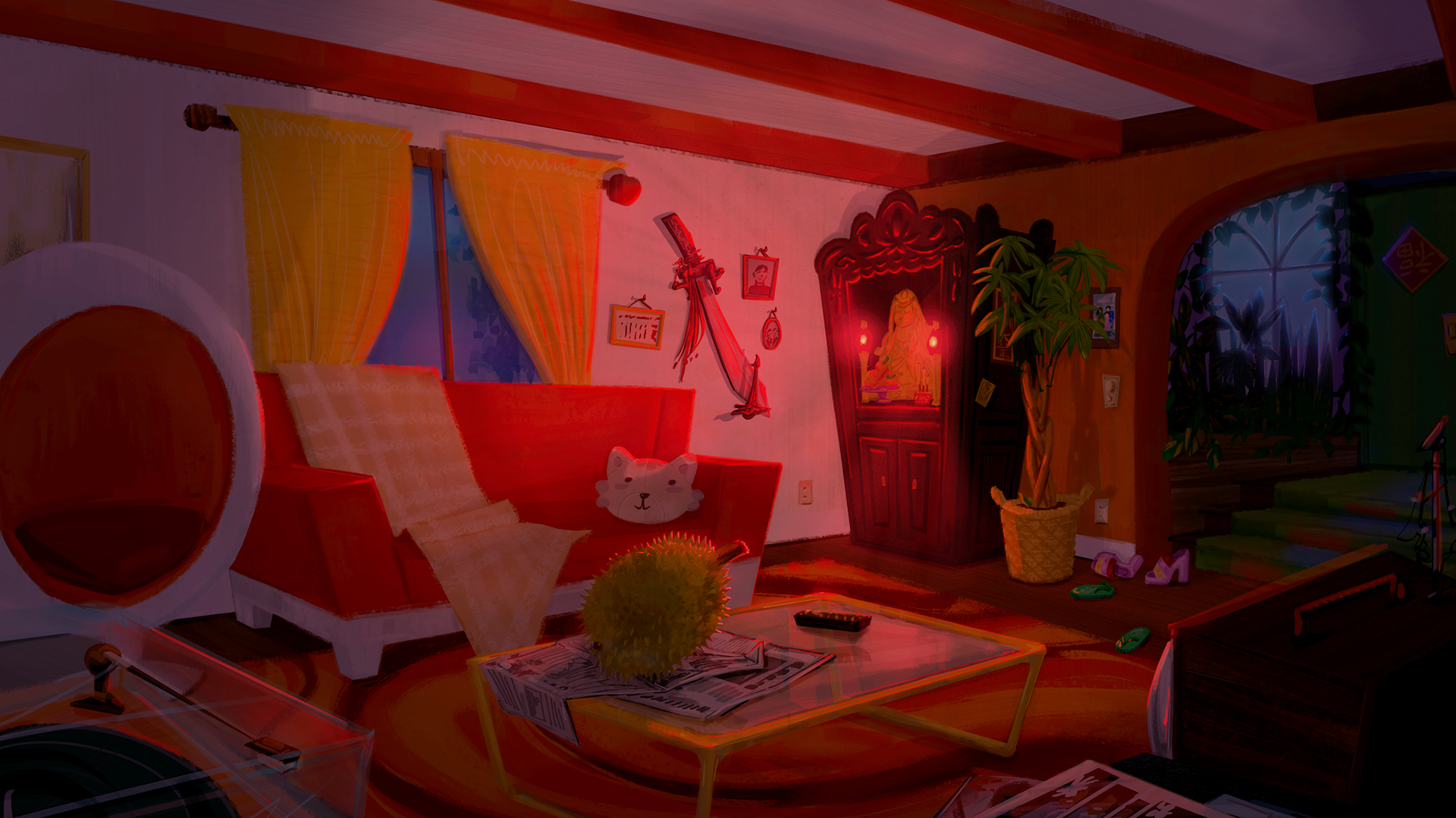 Not really background art, but a concept I wanted to play with--background describing the main character.